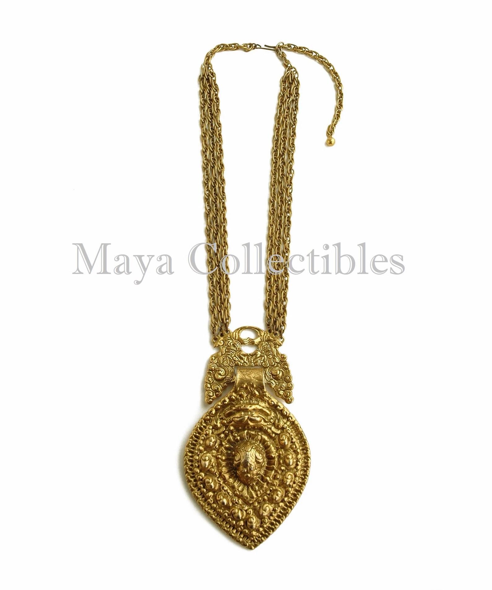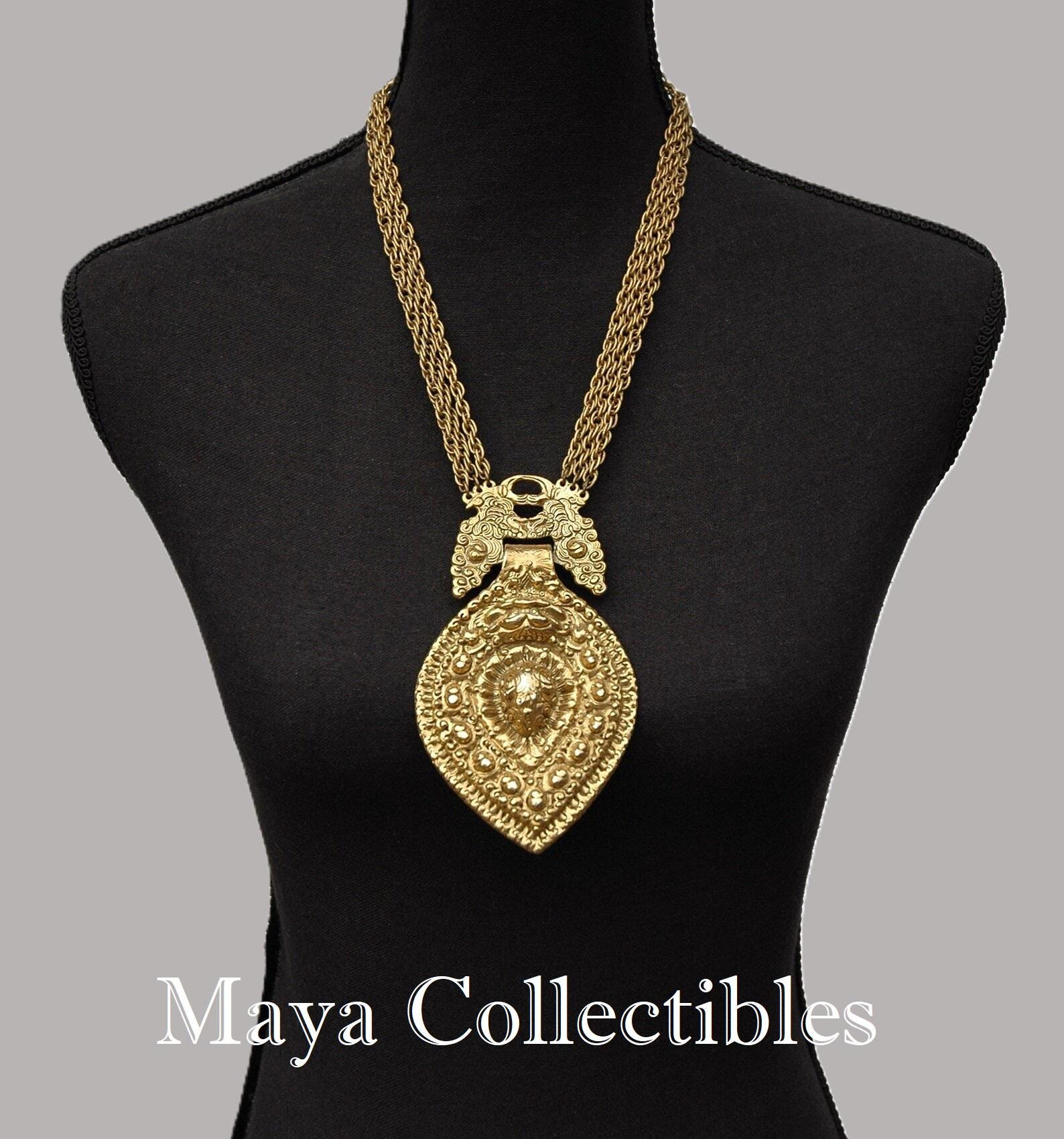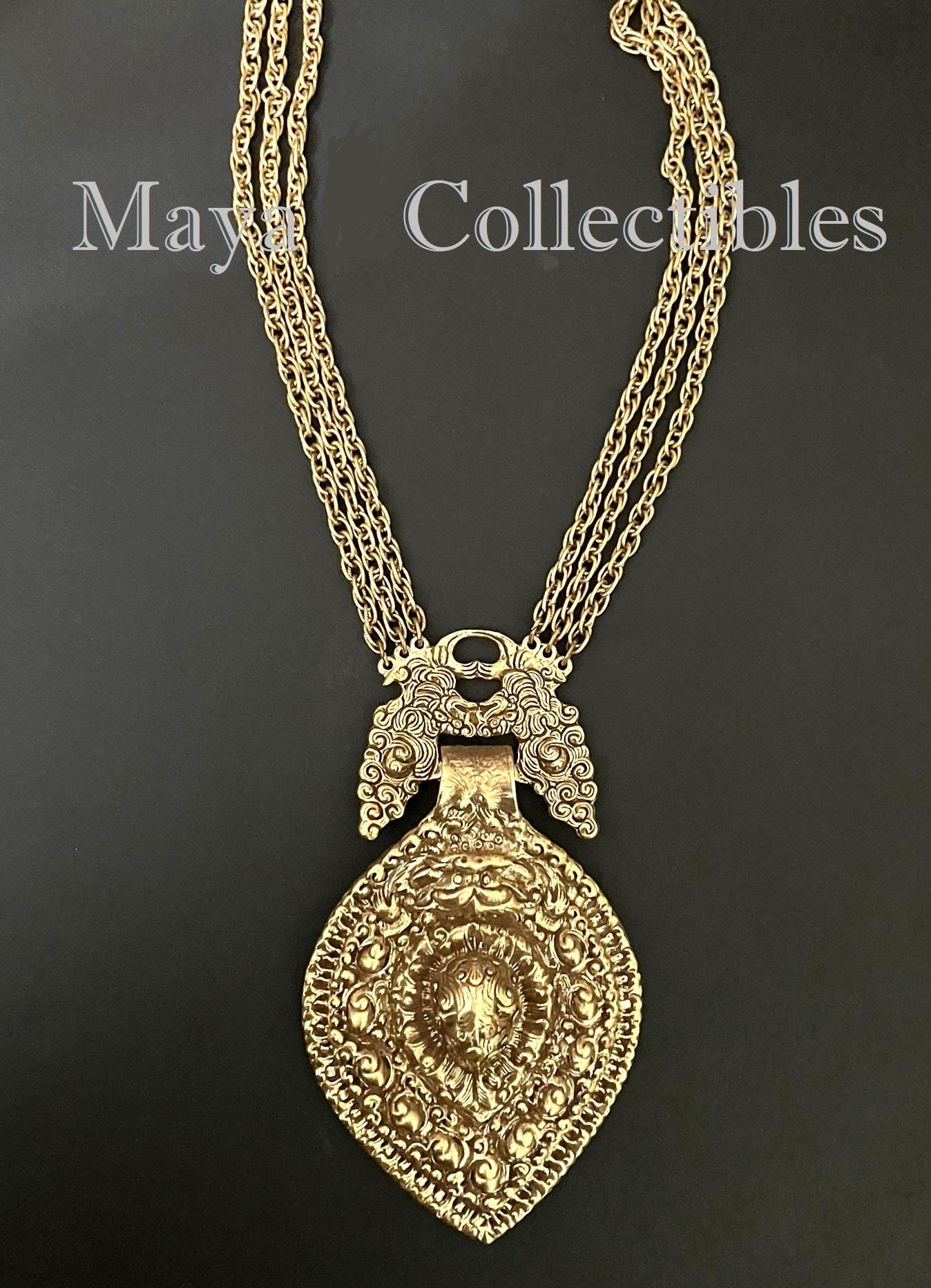 Vintage 70s GOLDETTE Large Etruscan Statement Necklace -